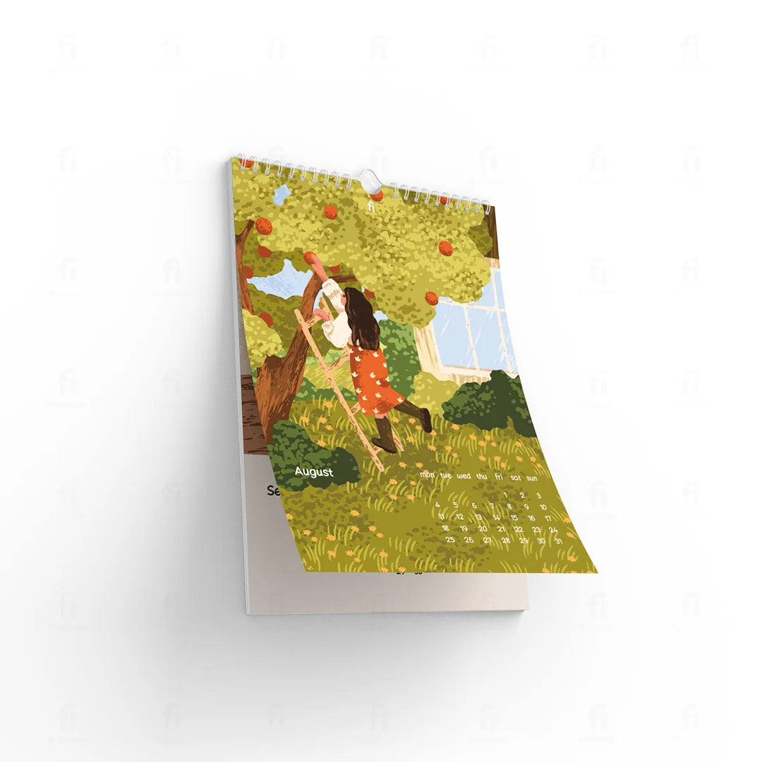 Each month is decorated with an original illustration in a casual, charming style, inspired by everyday moments full of warmth and peace. Colorful, hand-made graphics bring harmony and a unique atmosphere to the interior.